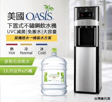 【雙水源飲水機】 OASIS UV滅菌 下置型 雙用三溫飲水機 (新款閃耀黑)